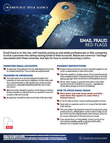 Pay careful attention to all email addresses throughout the Old Republic Title does not wire funds to third-party bank accounts.