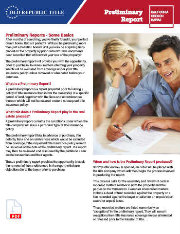 What role does a Preliminary Report play in the real