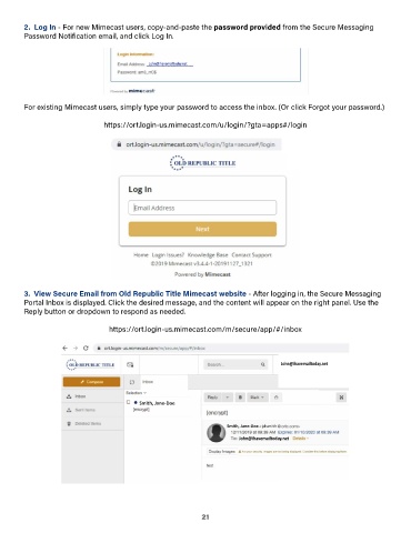 2� Log In - For new Mimecast users, copy-and-paste the password provided from the Secure Messaging