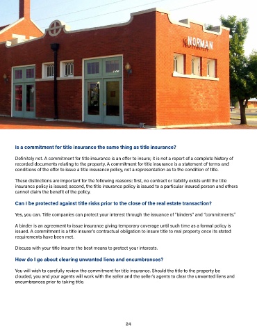 You will wish to carefully review the commitment for title insurance� Should the title to the property be