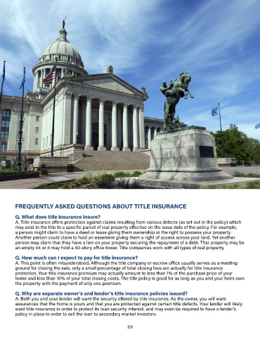 FREQUENTLY ASKED QUESTIONS ABOUT TITLE INSURANCE