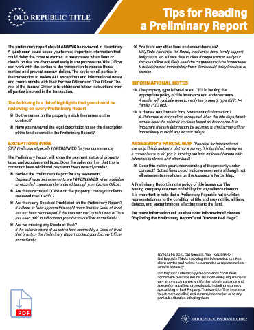 has been paid in full contact your Escrow Officer immediately. “Exploring the Preliminary Report” and “Escrow Red Flags”.